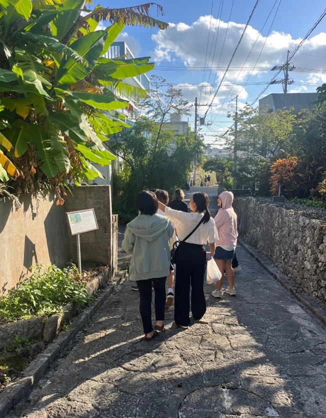 首里城までの道中では、首里金城町にある琉球石灰岩でできた歴史ある石畳道を通り、沖縄の赤瓦の家を見学するなど、散策しながら首里の街並みを楽しみました。