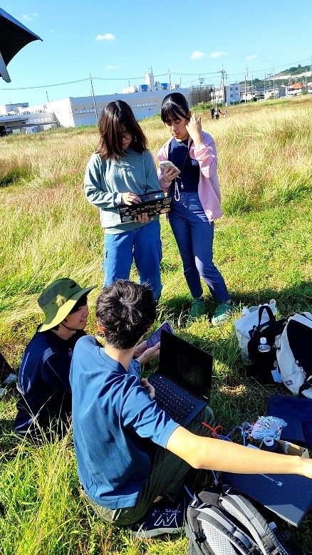 左から、北城杏(生物資源工学科1年)、大城七瑚(メディア情報工学科1年)、有吉勇人(情報システム工学科2年)、上原功大(情報システム工学科2年)