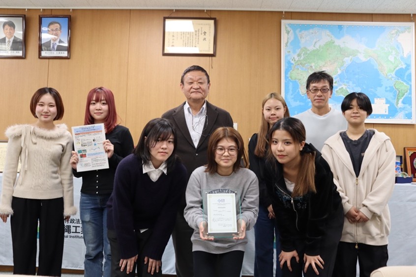 受賞学生:真栄平乙未(情2)、金城 理子(メ2)、中地 麗魅(情2)、比嘉 美遥(情2)